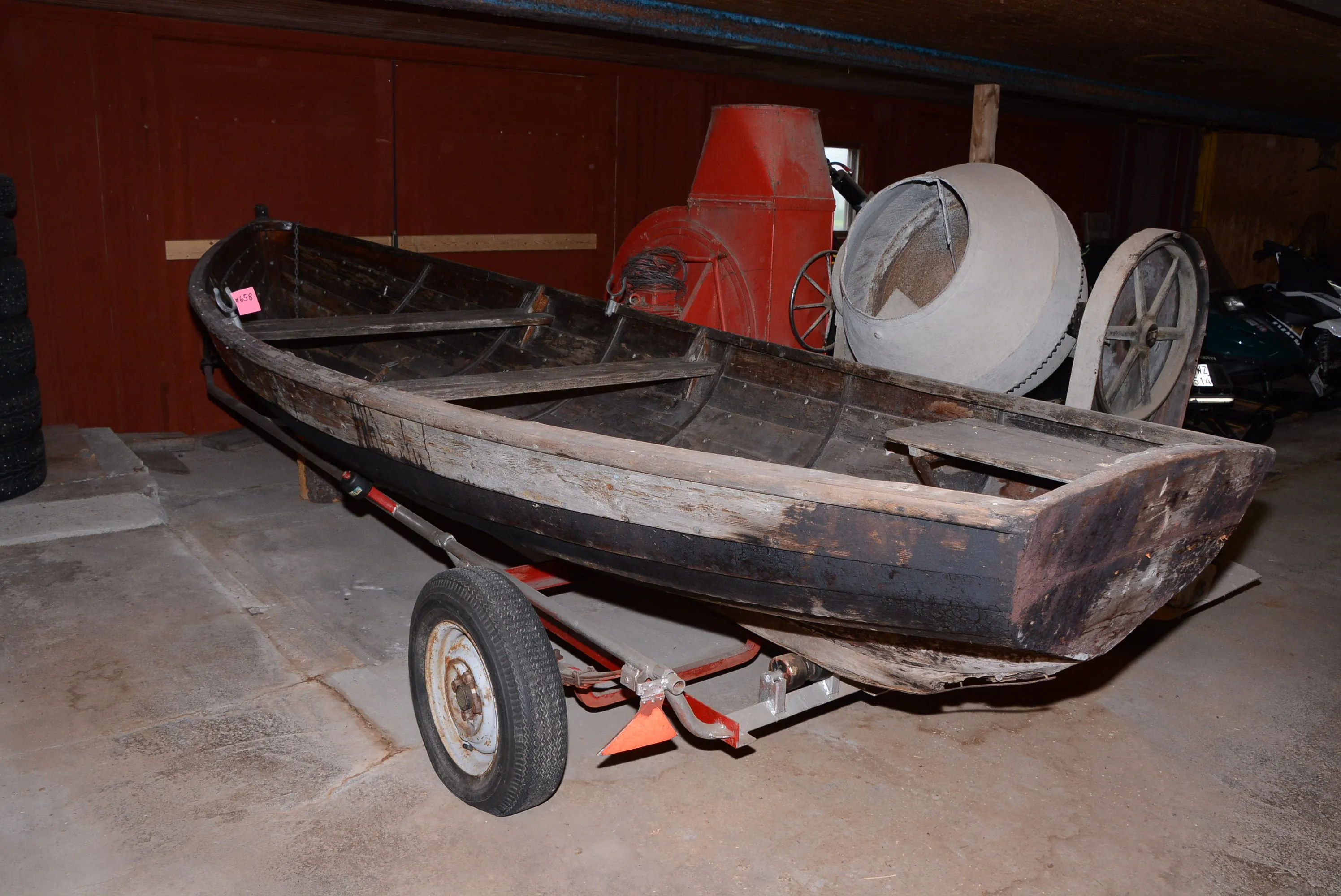 658. Träbåt 485x155 cm inkl båttrailer
