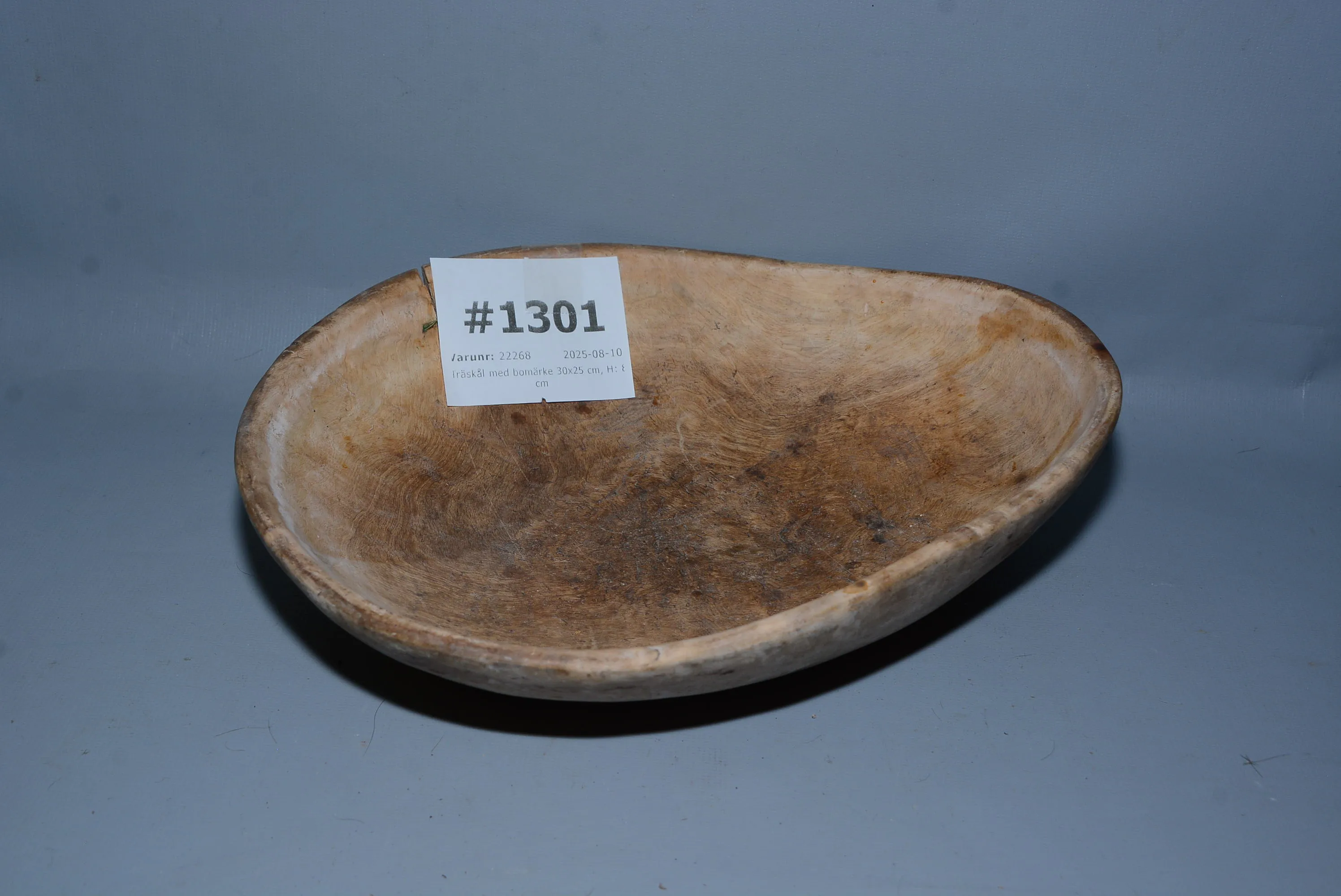 1301. Träskål med bomärke 30x25 cm, H: 8 cm