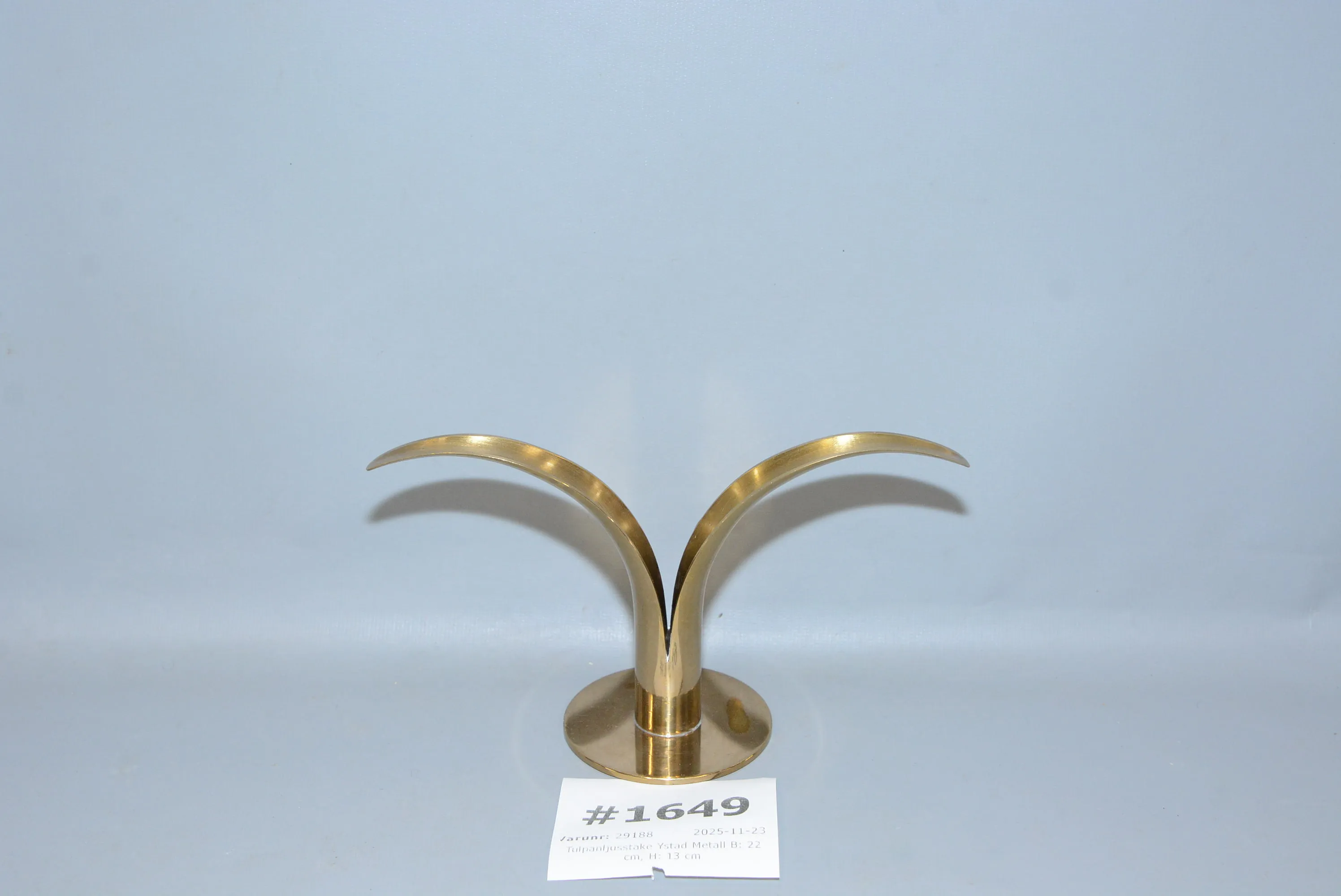 1649. Tulpanljusstake Ystad Metall B: 22 cm, H: 13 cm