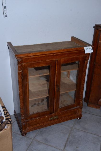134. Väggvitrinskåp med låda 75x35 cm, H: 90 cm