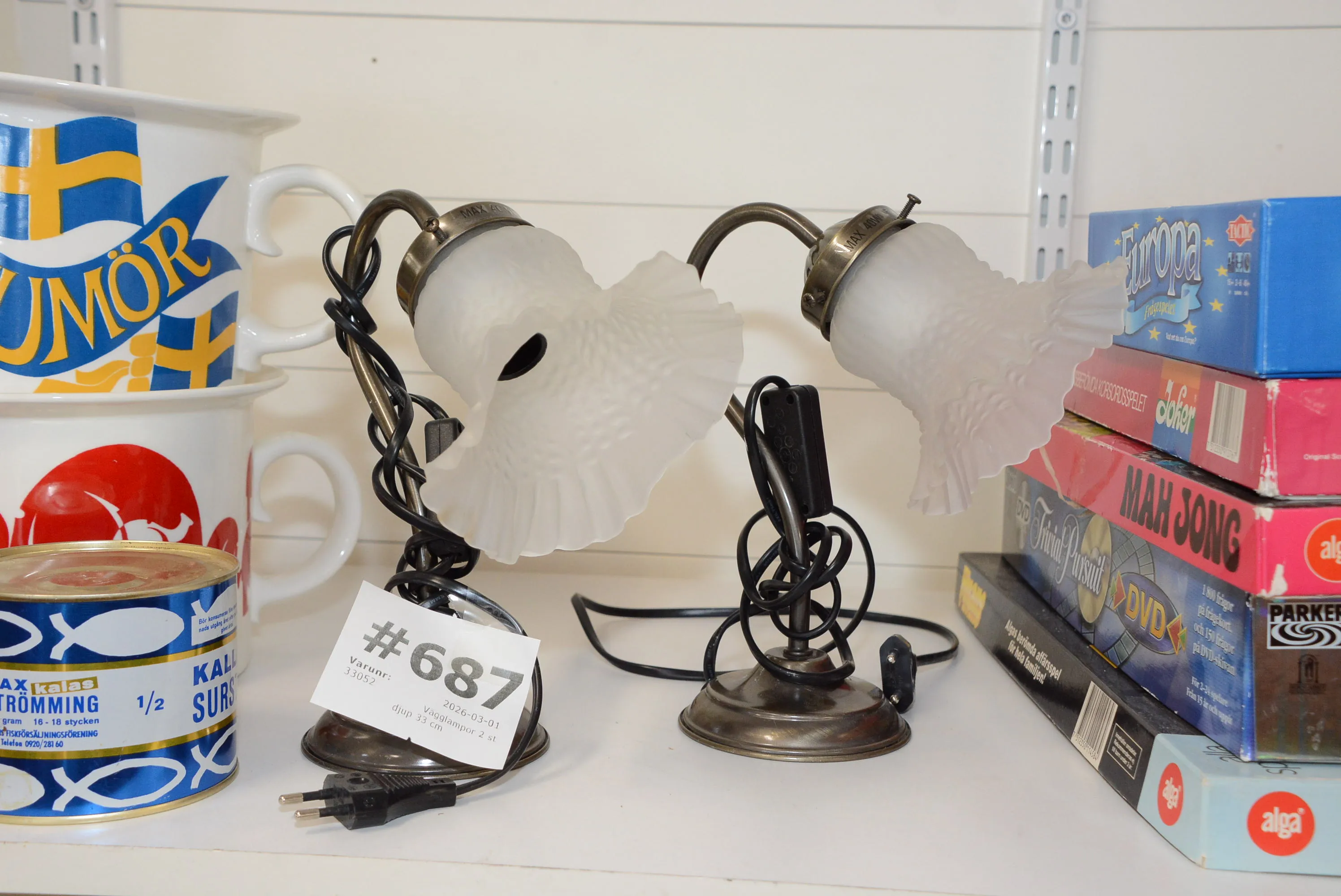 687. Vägglampor 2 st djup 33 cm
