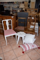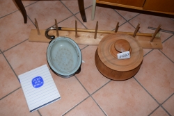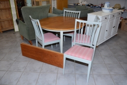 Bord diam: 105 cm, H: 72 cm Iläggsskivor 30x2 Stolar H: 90 cm